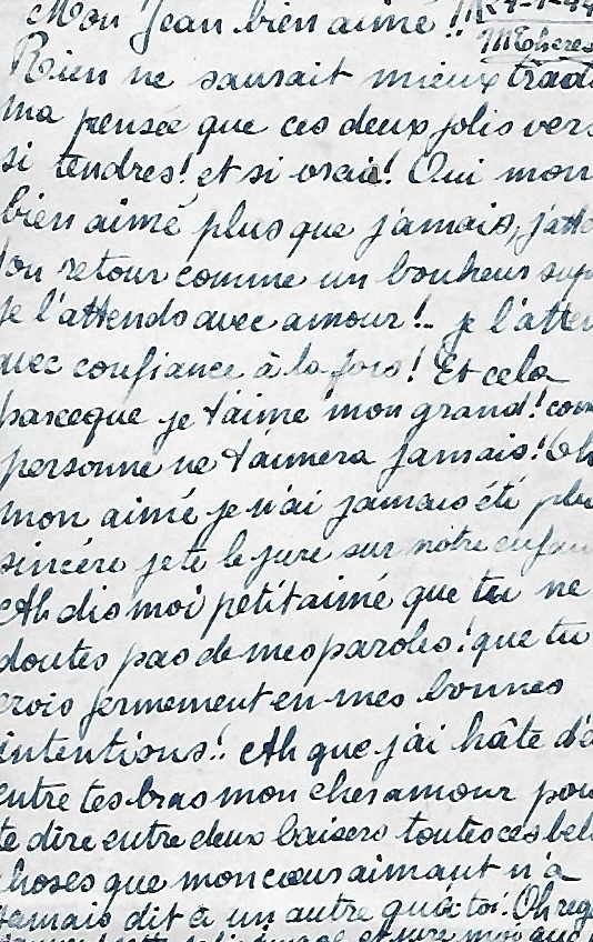 Jean, mobilisé, est rapidement fait prisonnier. Envoyé comme travailleur forcé dans une ferme en Allemagne, il entretient une correspondance régulière avec Marie-Thérèse. Elle lui envoie des colis de nourriture en se privant, découvrant peu à peu que sa condition, quoique captive, n’était pas des plus dures. Elle l’aimait.